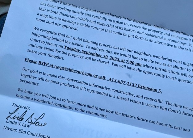 I appreciate Wayne Lemanski’s point of view and agree that the neighborhood support is an integral component to its success. (“Letter: Elm Court’s new owners should do more community outreach,” Eagle, Oct. 5.) Elm Court’s success will also be ensured if the broader communities of Stockbridge and Lenox continue to be supportive and to partner with us at every opportunity to save this exceptional property. This combined commitment will ensure a pathway forward amidst astronomical costs and hurdles. I promise you, Mr. Lemanski, that your name is on our list when the invitations are extended.